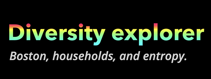 The data visualizations below show different types of households for Boston by composition, spotlighting three particular characteristics: race, language spoken, and birthplace. In order to provide a novel lens through which to view the diversity of a household, we calculate its “information entropy.” Entropy here is a mathematical measure of how rare it is to find a specific arrangement of people living together in our data. The higher the entropy, the higher the “informational” content, and the higher the degree of disorder of that household. By highlighting the households with more entropy, we provide a more intimate and fine-grained perspective on Boston’s diversity.